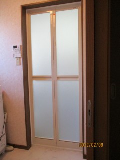 開閉すると扉が外れてきそうな浴室中折れドアを取り替えました。