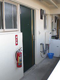 古くなって動きの悪い社員寮の玄関ドアを取り替えました。