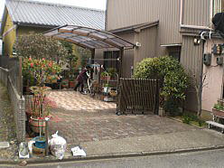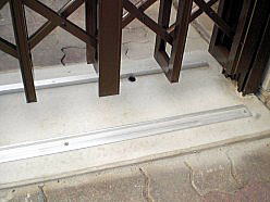 土間がインターロッキングブロック敷きで、凹凸がおおく可動に負荷がかかり格子が壊れたので取り替えました。戸車に負荷がかからないように、土間をコンクリート仕上げにしました。