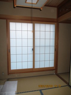 和室に合った和紙調組子付ガラスを取り付けました。