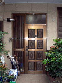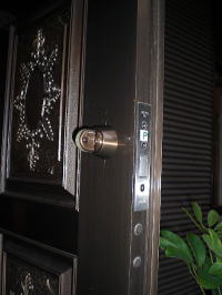 既存の玄関ドアに補助錠を取り付けました。1ロックから2ロックになりました。