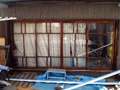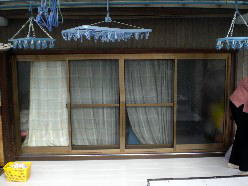 古くなった木製建具をアルミサッシに取り替えました。隙間風もなくなし雨戸一筋にもアルミ曲げ物をかぶせましたので、一筋からの雨漏りもなくなりました。