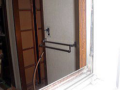 内倒し窓の障子が室内側におおきく傾き違和感を感じるため、面格子付ガラスルーバー窓に取り替えました。