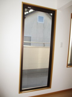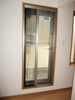 他メーカーのネットが破れたアコーデオン式網戸を取り替えました。