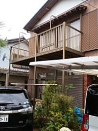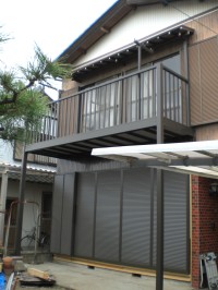 バルコニーの下に車を停めるために、古くなったバルコニーを2.5間通し(柱なし)仕様に取り替えました。