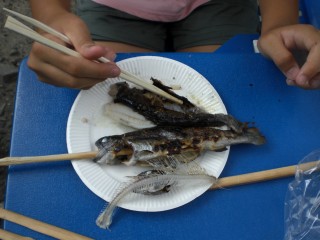 やはり河原で食べる魚は、格別です。日頃あまり食べない小1の男の子も「美味しい、美味しい」と言いながら食べていました。