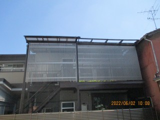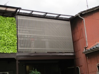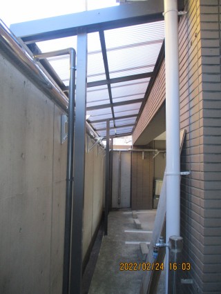 1階が駐車場で建物と塀の間にすき間があり、雨が降るたびに振り込み車が濡れるので、アルミテラスを取り付けました。