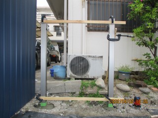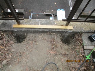 | 門扉柱用の穴あけ | 門扉柱設置 |