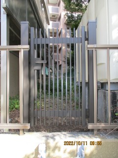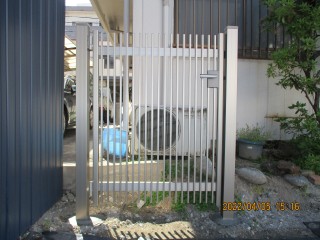 門扉替わりのフェンスが壊れたので、正規の門扉を取り付けました。