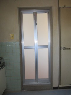 浴室中折れドア取り付け | 名古屋市・東海市で玄関ドア・引戸・浴室中折ドア・アルミサッシ・内窓の修理・取替・リフォームなら忠商アルミ有限会社