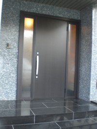 取り替えさせて頂きました玄関ドアのカラーはトリノパインです。豊富なデザイン・カラーの中で若い方に、とても人気があります。