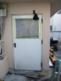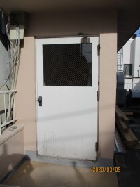 > 鉄扉修理(硝子割替・ドアクローザー取替・丁番調整)