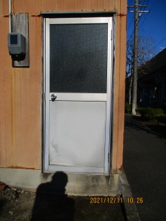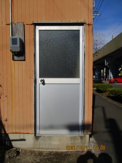 物置のガラスドアから空き巣に侵入されそうになり、ノブを壊されたり腰パネルを蹴られたりしたので取り替えました。