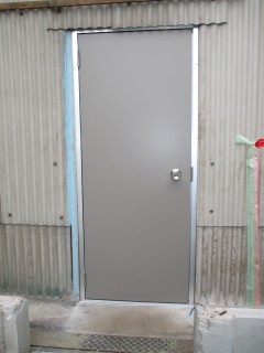 工場の出入口ドアを取り替えました。