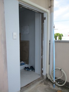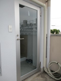 既設スチールドアをアルミガラスドアに取り替えました。